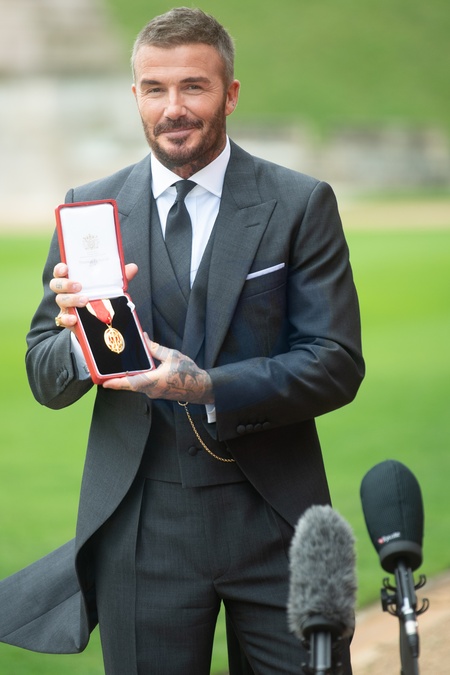 Sir David Beckham is interviewed by media after being awarded a Knighthood for services to Sport and to Charity at Windsor Castle, London, England, UK on Tuesday 4 November, 2025., Credit:Justin Ng / Avalon