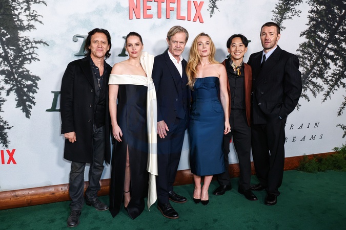 HOLLYWOOD, LOS ANGELES, CALIFORNIA, USA - NOVEMBER 03: American film and television actor Clifton Collins Jr., English actress Felicity Jones, American actor and director William H. Macy, Irish actress Kerry Condon, American martial artist, actor, and stuntman Alfred Hsing and Australian actor, writer, director, and producer Joel Edgerton arrive at the Los Angeles Premiere Of Netflix's 'Train Dreams' held at The Egyptian Theatre Hollywood on November 3, 2025 in Hollywood, Los Angeles, California, United States., Credit:Xavier Collin / Avalon