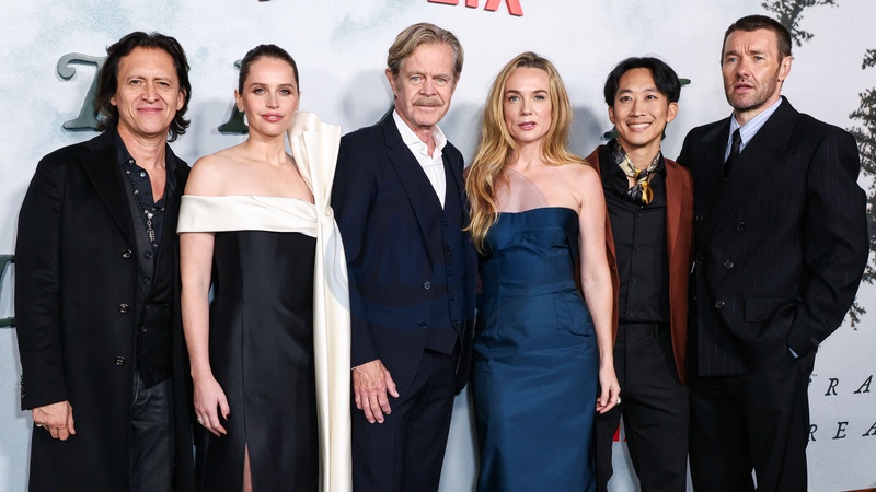 HOLLYWOOD, LOS ANGELES, CALIFORNIA, USA - NOVEMBER 03: American film and television actor Clifton Collins Jr., English actress Felicity Jones, American actor and director William H. Macy, Irish actress Kerry Condon, American martial artist, actor, and stuntman Alfred Hsing and Australian actor, writer, director, and producer Joel Edgerton arrive at the Los Angeles Premiere Of Netflix's 'Train Dreams' held at The Egyptian Theatre Hollywood on November 3, 2025 in Hollywood, Los Angeles, California, United States., Credit:Xavier Collin / Avalon