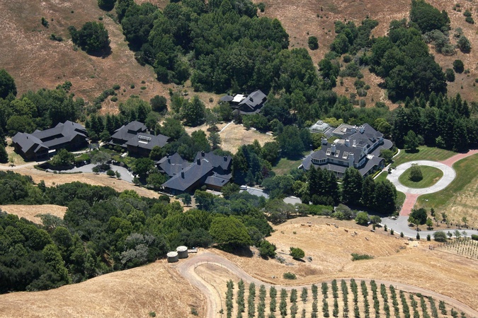 16001, MARIN COUNTY, CALIFORNIA. Tuesday, June 19, 2007. Aerial views of Skywalker Ranch in Northern California. The 4,700 acre property is the workplace of film director and producer George Lucas in secluded but open country near Nicasio, California in Marin County. Assembled parcel by parcel since September 1978, Skywalker Ranch has cost Lucas up to $100 million, according to the Wall Street Journal. The secluded property is not open to the public and Lucas has only developed 15 acres of the ranch which include, a barn with animals, vineyards, a garden with fruits and vegetables used in the on-site restaurant, an outdoor swimming pool and fitness center with racquetball courts, the man-made "Lake Ewok", a hilltop observatory, a 300-seat theater called "The Stag" as well as multiple theater screening rooms, and parking that is mostly concealed underground to preserve the natural landscape. Skywalker Sound was moved onto the ranch in 1987, now occupying the Technical Building. The Main House has a company research library under a stained-glass dome. Skywalker Ranch has its own fire station, which is part of the Marin County Mutual Aid system, and is often called on to assist firefighters in nearby Marinwood. Skywalker Ranch is intended to be more of a "filmmaker's retreat" than a headquarters for Lucas's business operations. The headquarters of Lucasfilm, Industrial Light & Magic, and LucasArts are located in Lucas's Letterman Digital Arts Center in the Presidio of San Francisco. Lucas does not live on the Ranch.***FEE MUST BE AGREED PRIOR TO USAGE***, Credit:pacificcoastnews.com / Avalon