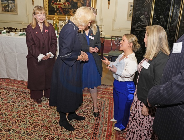 Queen Camilla speaks to Ellie Simmonds, as she hosts members of the National Association of Care Catering (NACC), and representatives from Royal Voluntary Service (RVS) in a celebration of community volunteering during Meals on Wheels Week, at Clarence House in central London. Picture date: Wednesday November 5, 2025., Credit:Jordan Pettitt / Avalon