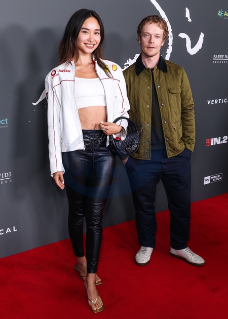 BEVERLY HILLS, LOS ANGELES, CALIFORNIA, USA - NOVEMBER 04: Collette Riboldi and English actor Alfie Allen arrive at the Los Angeles Premiere Of Vertical Entertainment's 'Modi: Three Days On The Wing Of Madness' held at the Writers Guild Theater on November 4, 2025 in Beverly Hills, Los Angeles, California, United States., Credit:Xavier Collin / Avalon