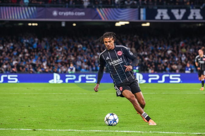 Champions League match between Napoli and Eintracht Frankfurt at the Diego Armando Maradona Stadium. Pictured is Eintracht Frankfurt's Hugo Larsson. Naples, Italy 04 November 2025, Credit:Fabio Sasso / Avalon