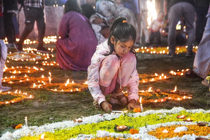 children participate in dev deepawali celebrations by lighting rows of earthen lamps at mankameswar ghat in lucknow, november 5,2025, Credit:Amit Shukla / Avalon