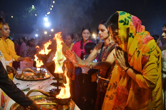 people gather at mankameshwar ghat decked up with thousands of lamps during dev deepawali celebrations , in lucknow, nov 5, 2025, Credit:Amit Shukla / Avalon