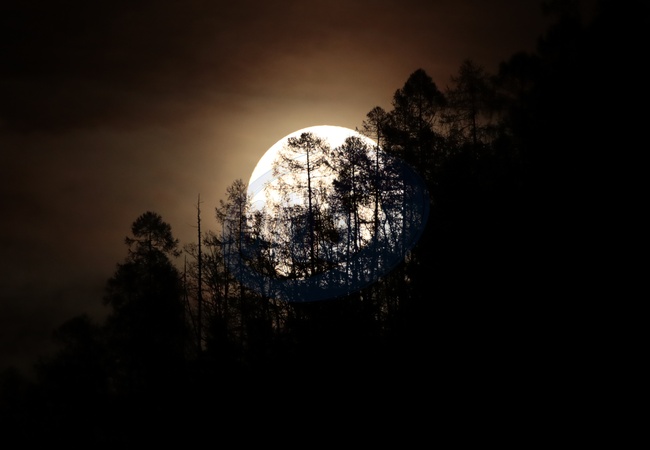 November 5, 2025, Pergine Valsugana, Italy. The full moon, also known as the "Beaver Moon," rises behind the trees in the Mocheni Valley, in the Dolomites.The full moon is pictured., Credit:Pierre Teyssot / Avalon