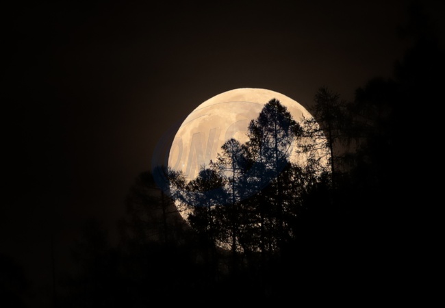 November 5, 2025, Pergine Valsugana, Italy. The full moon, also known as the "Beaver Moon," rises behind the trees in the Mocheni Valley, in the Dolomites.The full moon is pictured., Credit:Pierre Teyssot / Avalon