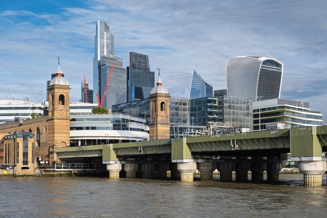 Heart of the City of london financial district, behind Cannon street railway station. London, UK.