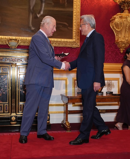 King Charles III presents the 2025 Queen Elizabeth Prize for Engineering to Jensen Huang, for his contribution to the development of modern machine learning in the field of Artificial Intelligence, during a reception at St James' Palace in central London. The Queen Elizabeth Prize for Engineering (QEPrize) champions engineering innovation which is of global benefit to humanity. Picture date: Wednesday November 5, 2025., Credit:Yui Mok / Avalon