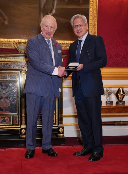 King Charles III presents the 2025 Queen Elizabeth Prize for Engineering to Jensen Huang, for his contribution to the development of modern machine learning in the field of Artificial Intelligence, during a reception at St James' Palace in central London. The Queen Elizabeth Prize for Engineering (QEPrize) champions engineering innovation which is of global benefit to humanity. Picture date: Wednesday November 5, 2025., Credit:Yui Mok / Avalon