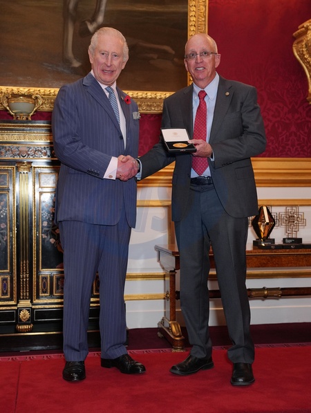 King Charles III (left) presents the 2025 Queen Elizabeth Prize for Engineering to Dr. Bill Dally, for his contribution to the development of modern machine learning in the field of Artificial Intelligence, during a reception at St James' Palace in central London. The Queen Elizabeth Prize for Engineering (QEPrize) champions engineering innovation which is of global benefit to humanity. Picture date: Wednesday November 5, 2025., Credit:Yui Mok / Avalon