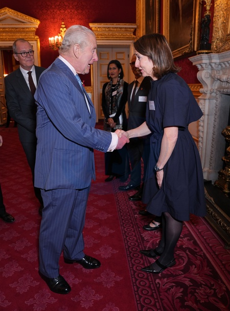 King Charles III greets Secretary of State for Science, Innovation and Technology, Liz Kendall, during a reception for the 2025 Queen Elizabeth Prize for Engineering, at St James' Palace in central London. The Queen Elizabeth Prize for Engineering (QEPrize) champions engineering innovation which is of global benefit to humanity. Picture date: Wednesday November 5, 2025., Credit:Yui Mok / Avalon