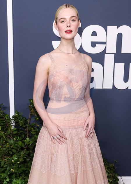 LOS ANGELES, CALIFORNIA, USA - NOVEMBER 05: American actress and singer Elle Fanning wearing a Fendi Couture dress and Cartier jewelry arrives at the Los Angeles Premiere Of Neon's 'Sentimental Value' held at the DGA Theater Complex at The Directors Guild of America on November 5, 2025 in Los Angeles, California, United States., Credit:Xavier Collin / Avalon