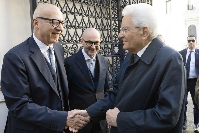 President of the Republic Sergio Mattarella was welcomed at Palazzo Bachelet by Pasquale D'Ascola, First President of the Court of Cassation, on the occasion of the conference entitled "Giovanni Gronchi between Politics and Institutions." Rome, Italy 06 November 2025, Credit:Francesco Ammendola / Avalon