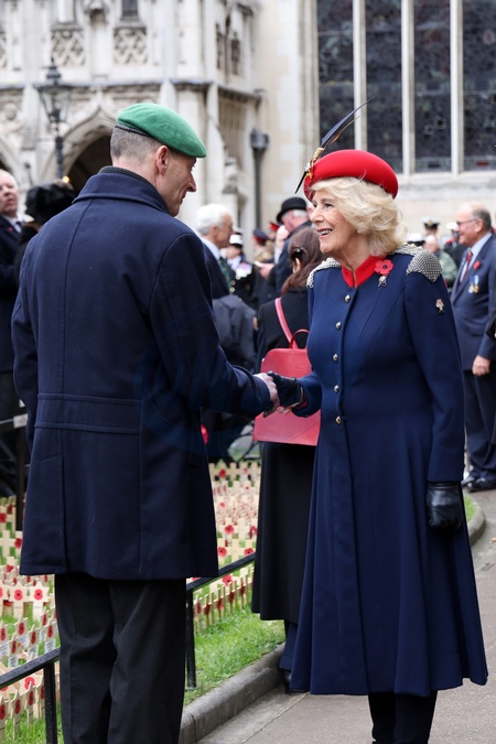 Queen Camilla speaks with attendees on a visit to the 97th Field Of Remembrance at Westminster Abbey on November 06, 2025 in London, England. The Field of Remembrance has been held every November since 1928 when The Poppy Factory, of which Queen Camilla is Patron, brought a group of disabled veterans, a tray of poppies and a collecting tin to the grounds of St Margaret's Church at Westminster Abbey., Credit:Avalon.red / Avalon