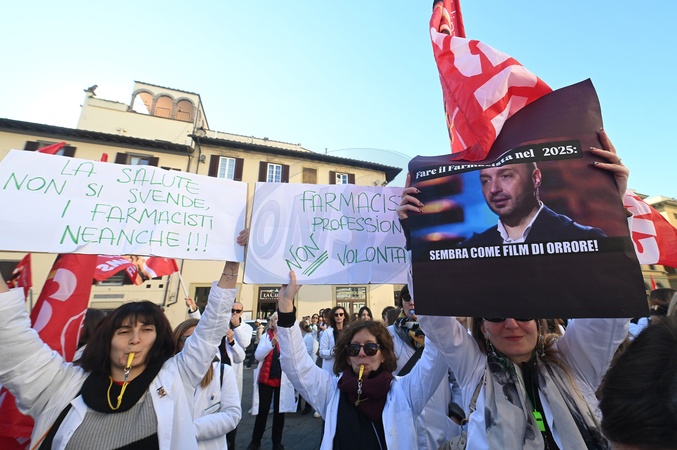 Private pharmacy workers held a strike and protest for the renewal of the national labor contract, which expired in 2024. The strike was called by CGIL, Filcams, CISL, FISASCAT, and UILTCUS. Florence, Italy 06 November 2025, Credit:Aleandro Biagianti / Avalon