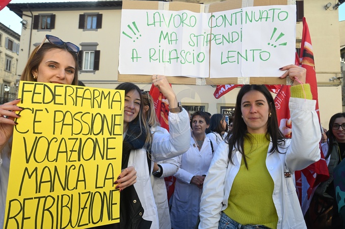 Private pharmacy workers held a strike and protest for the renewal of the national labor contract, which expired in 2024. The strike was called by CGIL, Filcams, CISL, FISASCAT, and UILTCUS. Florence, Italy 06 November 2025, Credit:Aleandro Biagianti / Avalon