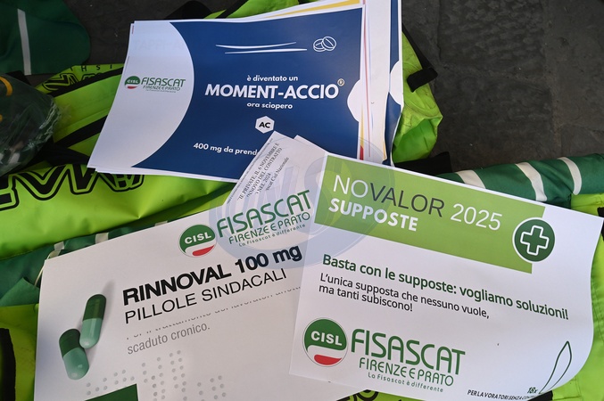 Private pharmacy workers held a strike and protest for the renewal of the national labor contract, which expired in 2024. The strike was called by CGIL, Filcams, CISL, FISASCAT, and UILTCUS. Florence, Italy 06 November 2025, Credit:Aleandro Biagianti / Avalon
