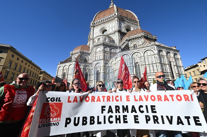 Private pharmacy workers held a strike and protest for the renewal of the national labor contract, which expired in 2024. The strike was called by CGIL, Filcams, CISL, FISASCAT, and UILTCUS. Florence, Italy 06 November 2025, Credit:Aleandro Biagianti / Avalon