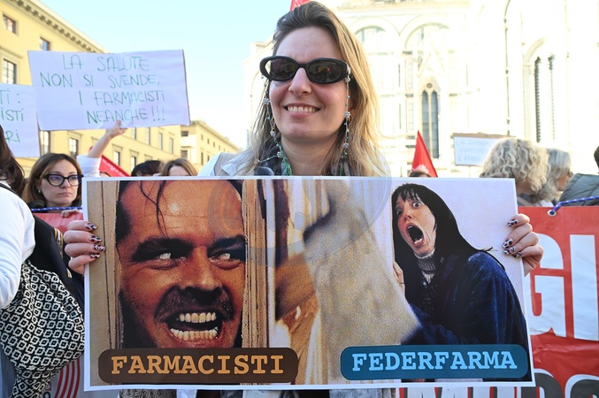 Private pharmacy workers held a strike and protest for the renewal of the national labor contract, which expired in 2024. The strike was called by CGIL, Filcams, CISL, FISASCAT, and UILTCUS. Florence, Italy 06 November 2025, Credit:Aleandro Biagianti / Avalon