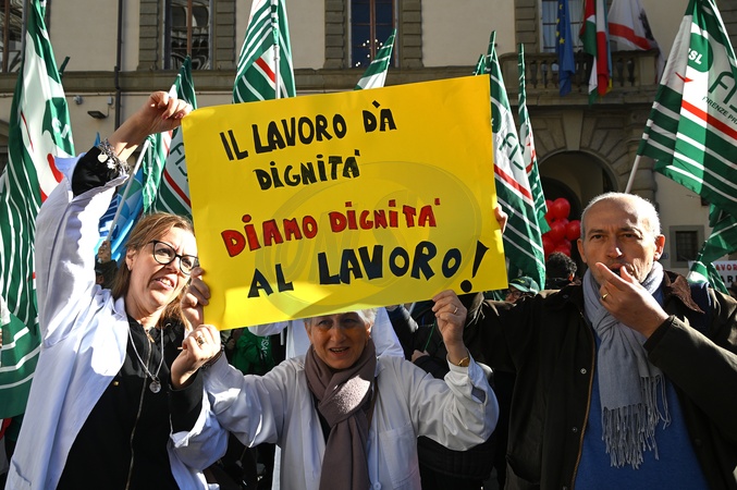 Private pharmacy workers held a strike and protest for the renewal of the national labor contract, which expired in 2024. The strike was called by CGIL, Filcams, CISL, FISASCAT, and UILTCUS. Florence, Italy 06 November 2025, Credit:Aleandro Biagianti / Avalon