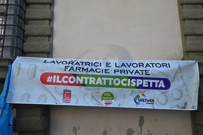 Private pharmacy workers held a strike and protest for the renewal of the national labor contract, which expired in 2024. The strike was called by CGIL, Filcams, CISL, FISASCAT, and UILTCUS. Florence, Italy 06 November 2025, Credit:Aleandro Biagianti / Avalon