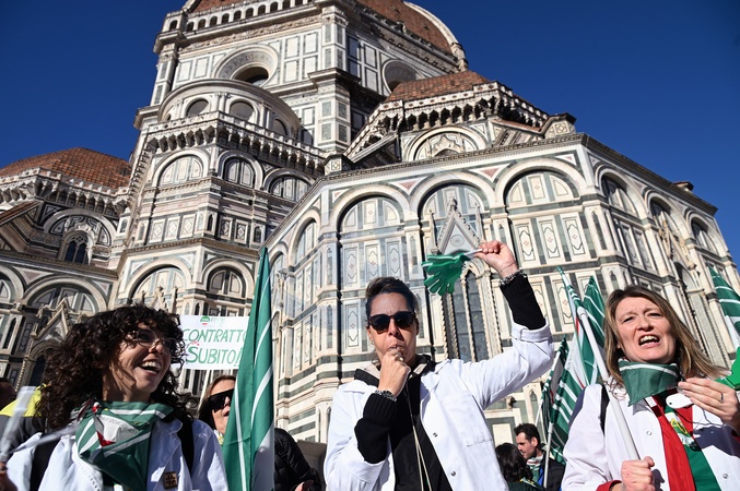 Private pharmacy workers held a strike and protest for the renewal of the national labor contract, which expired in 2024. The strike was called by CGIL, Filcams, CISL, FISASCAT, and UILTCUS. Florence, Italy 06 November 2025, Credit:Aleandro Biagianti / Avalon