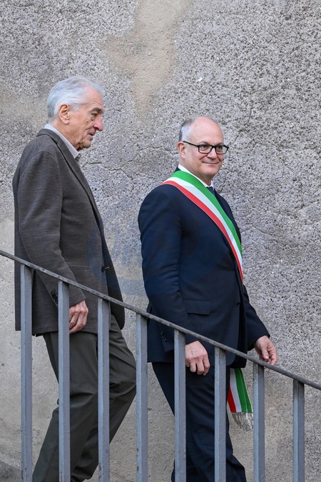 Robert De Niro arrived in the capital today for a two-day celebration combining cinema, culture, and luxury hospitality. Pictured is the actor at the Capitoline Hill, where he will receive an official award—the Capitoline Wolf. Pictured is Robert De Niro with Rome Mayor Roberto Gualtieri on Nov 6th 2025, Credit:Maria Laura Antonelli/AGF / Avalon