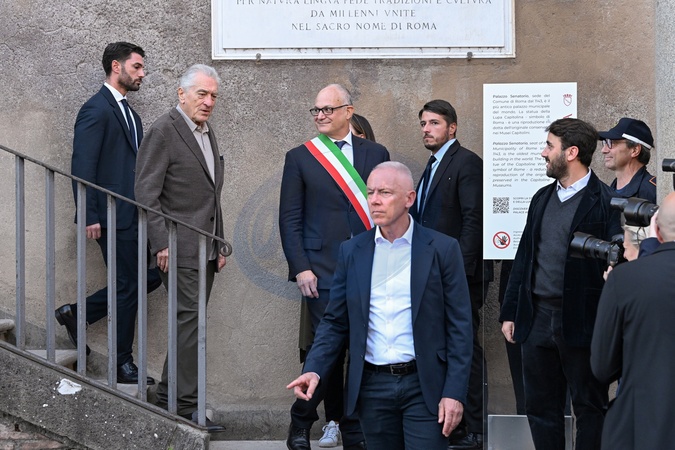 Robert De Niro arrived in the capital today for a two-day celebration combining cinema, culture, and luxury hospitality. Pictured is the actor at the Capitoline Hill, where he will receive an official award—the Capitoline Wolf. Pictured is Robert De Niro with Rome Mayor Roberto Gualtieri on Nov 6th 2025, Credit:Maria Laura Antonelli/AGF / Avalon