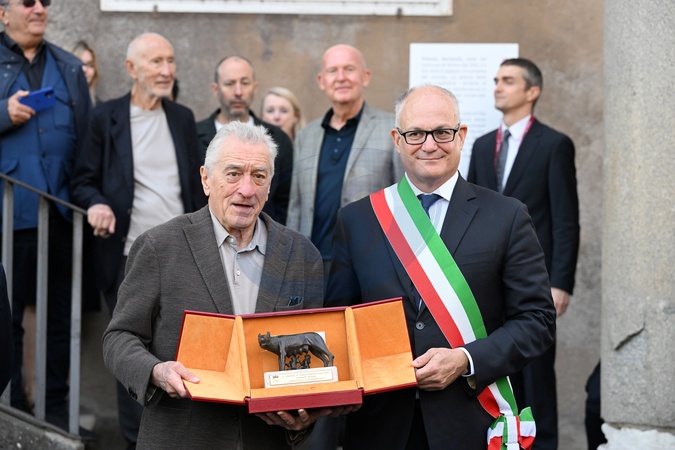 Robert De Niro arrived in the capital today for a two-day celebration combining cinema, culture, and luxury hospitality. Pictured is the actor at the Capitoline Hill, where he will receive an official award—the Capitoline Wolf. Pictured is Robert De Niro with Rome Mayor Roberto Gualtieri on Nov 6th 2025, Credit:Maria Laura Antonelli/AGF / Avalon