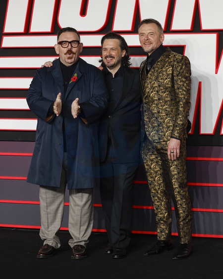 Nick Frost, Edgar Wright and Simon Pegg attending The Running Man UK Premiere at the Odeon Luxe in Leicester Square, London, United Kingdom, Credit:Cat Morley / Avalon