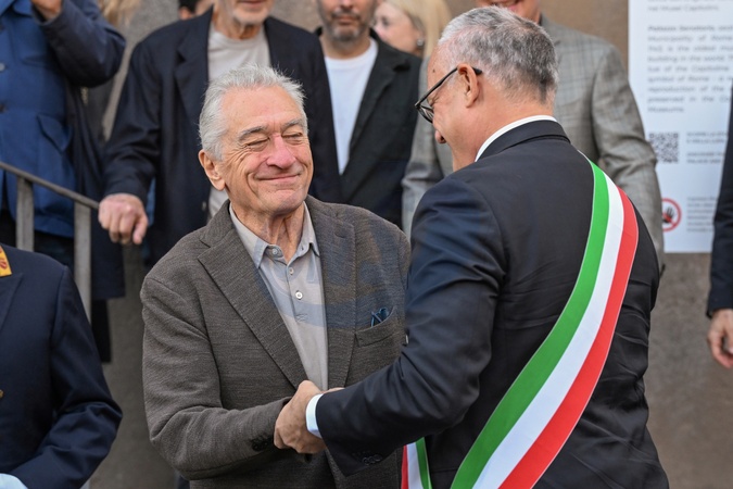 Robert De Niro arrived in the capital today for a two-day celebration combining cinema, culture, and luxury hospitality. Pictured is the actor at the Capitoline Hill, where he will receive an official award—the Capitoline Wolf. Pictured is Robert De Niro with Rome Mayor Roberto Gualtieri on Nov 6th 2025, Credit:Maria Laura Antonelli/AGF / Avalon