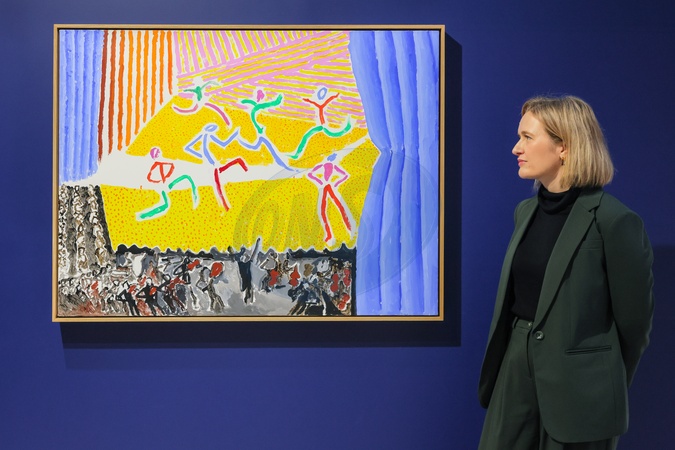 London, UK. 06th Nov, 2025. Staff with Dancers with Audience and Orchestra, August 2025. 'Some Very, Very, Very New Paintings not yet Shown in Paris' debuts never-seen-before paintings completed in David Hockney's London studio over the last six months. The show is the inaugural exhibition at Annely Juda Fine Art's new space on Hanover Square., Credit:Imageplotter / Avalon