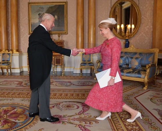 Kristina Miskowiak Beckvard, Ambassador of Denmark, presents her credentials to King Charles III during a private audience at Buckingham Palace, London. Picture date: Thursday November 6, 2025., Credit:Yui Mok / Avalon