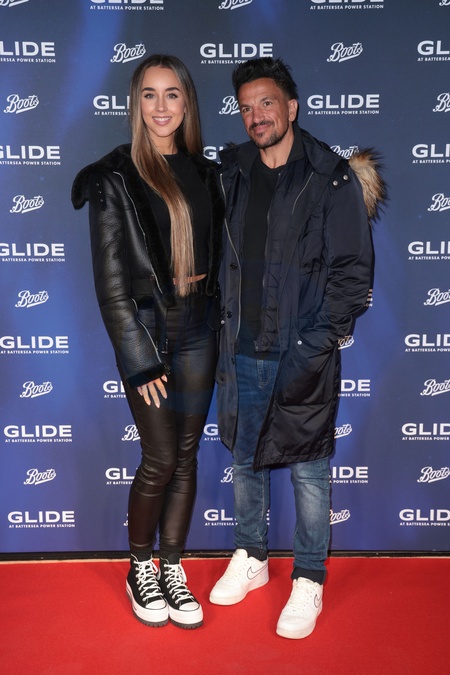 Emily MacDonagh and Peter Andre at Glide Ice Rink Launch Party, Battersea Power Station in London, UK, on the 6th November 2025, Credit:James Shaw / Avalon