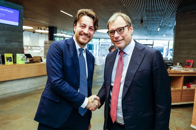 Confindustria Veneto at the M9 Museum. Pictured: Veneto Region Presidential Elections - Alberto Stefani with Confindustria National Vice President Vincenzo Marinese. in Mestre, Nov 6th 2025, Credit:Mirco Toniolo / Avalon