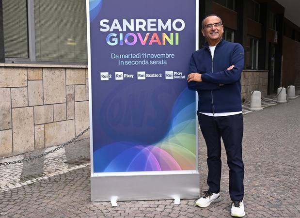 07/11/2025 Roma. Rai2 presentazione del programma televisivo Sanremo Giovani 2025. Nella foto Carlo Conti, Credit:Maria Laura Antonelli / Avalon