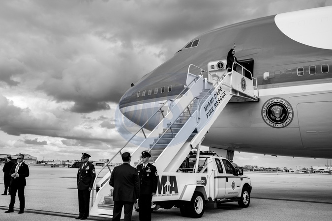 President Donald Trump waves to members of the media as he boards Air Force One at Miami International Airport, Wednesday, November 5, 2025., Credit:Molly Riley / Avalon