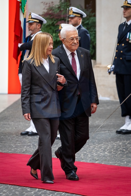 Italian Prime Minister Giorgia Meloni receives the President of Palestine, Mahmūd Abbās, aka Abu Mazen, at Palazzo Chigi in Rome, Italy on 07 November 2025.