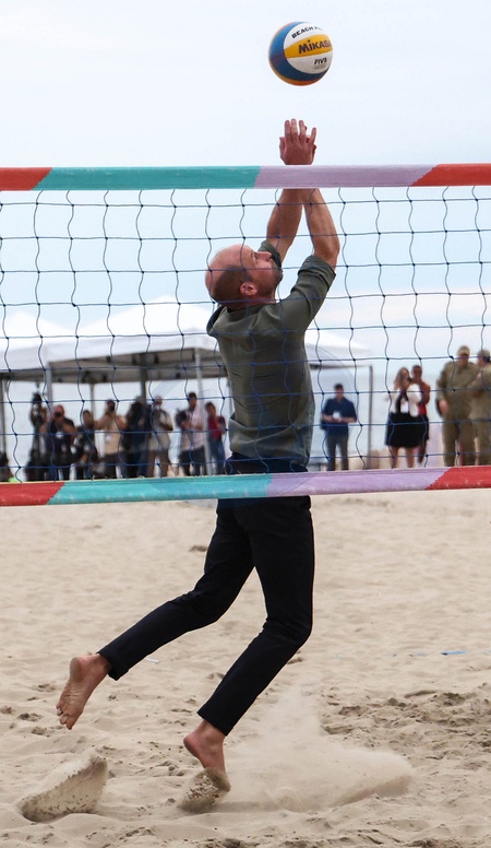 03/11/2025. Rio de Janeiro, Brazil. The Prince of Wales plays volleyball during a visit to Copacabana Beach., Credit:Pete Maclaine / Avalon