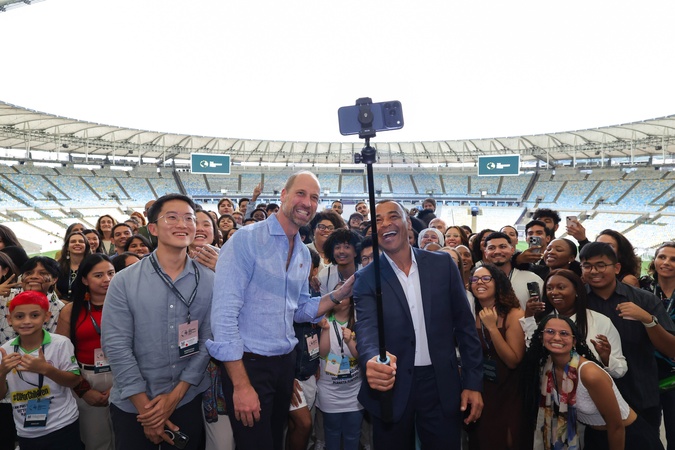 03/11/2025. Rio de Janeiro, Brazil. The Prince of Wales with Cafu during a visit to the Maracanã Stadium to engage in a Generation Earthshot event with young people from across the region., Credit:Pete Maclaine / Avalon