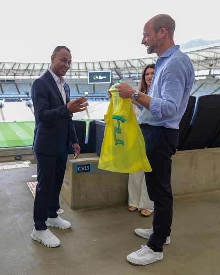 03/11/2025. Rio de Janeiro, Brazil. The Prince of Wales with Cafu during a visit to the Maracanã Stadium to engage in a Generation Earthshot event with young people from across the region., Credit:Pete Maclaine / Avalon
