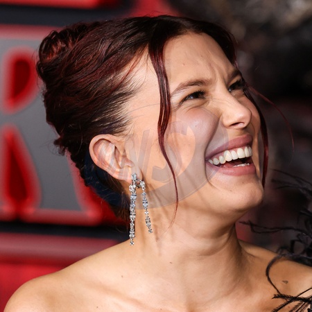 HOLLYWOOD, LOS ANGELES, CALIFORNIA, USA - NOVEMBER 06: British actress and producer Millie Bobby Brown wearing Rodarte and Chopard earrings and a ring, both from the Haute Joaillerie Collection arrives at the Los Angeles Premiere Of Netflix's 'Stranger Things' Season 5 held at the TCL Chinese Theatre IMAX on November 6, 2025 in Hollywood, Los Angeles, California, United States., Credit:Xavier Collin / Avalon