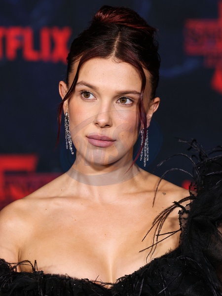 HOLLYWOOD, LOS ANGELES, CALIFORNIA, USA - NOVEMBER 06: British actress and producer Millie Bobby Brown wearing Rodarte and Chopard earrings and a ring, both from the Haute Joaillerie Collection arrives at the Los Angeles Premiere Of Netflix's 'Stranger Things' Season 5 held at the TCL Chinese Theatre IMAX on November 6, 2025 in Hollywood, Los Angeles, California, United States., Credit:Xavier Collin / Avalon