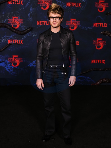 HOLLYWOOD, LOS ANGELES, CALIFORNIA, USA - NOVEMBER 06: Joe Keery wearing Gucci SS26 RTW arrives at the Los Angeles Premiere Of Netflix's 'Stranger Things' Season 5 held at the TCL Chinese Theatre IMAX on November 6, 2025 in Hollywood, Los Angeles, California, United States., Credit:Xavier Collin / Avalon