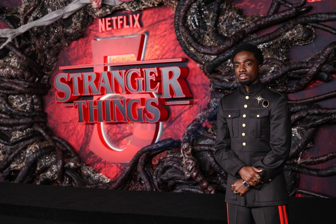 HOLLYWOOD, LOS ANGELES, CALIFORNIA, USA - NOVEMBER 06: Caleb McLaughlin wearing Wales Bonner FW25 RTW, specifically Look 15 from the Autumn Winter 2025 ‘Selah' Collection and a Hublot timepiece arrives at the Los Angeles Premiere Of Netflix's 'Stranger Things' Season 5 held at the TCL Chinese Theatre IMAX on November 6, 2025 in Hollywood, Los Angeles, California, United States., Credit:Xavier Collin / Avalon