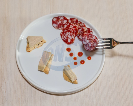 Meat Plate with Saucisson from Westcombe Dairy and Mousse De Canard duck pâté from Meat Fish Cheese on cherry shortbread at Nekter Deli in Shoreditch, London, Credit:Mario Mitsis / Avalon