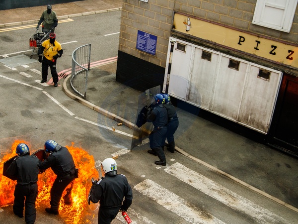 London's Metropolitan Police training in the face of extreme civil disorder, featuring the use of petrol bombs/molotov cocktails. This training took place in conjunction with the NUJ and their visit to the Metropolitan Police Specialist Training Centre in Gravesend, Kent, UK, 7 November 2025, Credit:Alex Day / Avalon