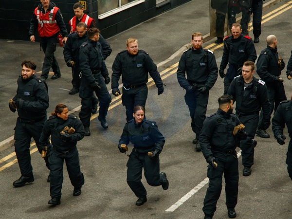 London's Metropolitan Police training in the face of extreme civil disorder, featuring the use of petrol bombs/molotov cocktails. This training took place in conjunction with the NUJ and their visit to the Metropolitan Police Specialist Training Centre in Gravesend, Kent, UK, 7 November 2025, Credit:Alex Day / Avalon