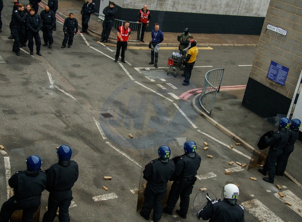 London's Metropolitan Police training in the face of extreme civil disorder, featuring the use of petrol bombs/molotov cocktails. This training took place in conjunction with the NUJ and their visit to the Metropolitan Police Specialist Training Centre in Gravesend, Kent, UK, 7 November 2025, Credit:Alex Day / Avalon